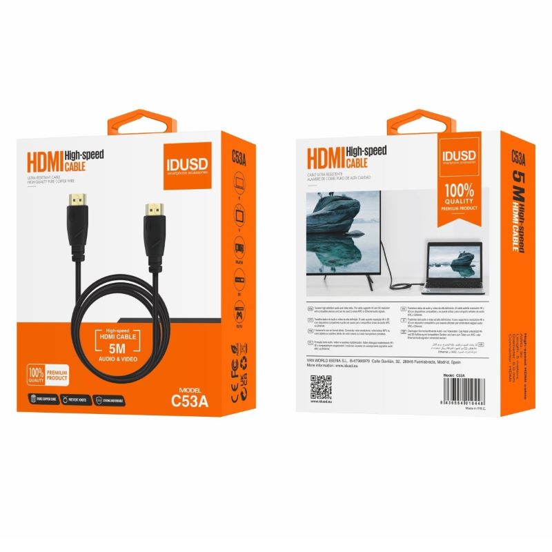 O Cabo HDMI 1.4 (1080p, 3D, 4K) 5M foi projetado para proporcionar uma experiência de entretenimento de alta qualidade. Compatível com resoluções de 1080p e UHD 4K, este cabo é perfeito para desfrutar de imagens nítidas e detalhadas em Ultra HDTVs, Xbox, PlayStation e mais.